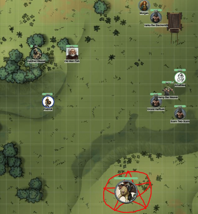 First, we meet a weird cursed chimera doing a demon summoning ritual. We’ve actually run across this chimera like twice before out of sheer encounter table luck and he’s become a recurring thing. We kill him so he won’t recur. (Well… It’s probably not that simple, but may as well try.)