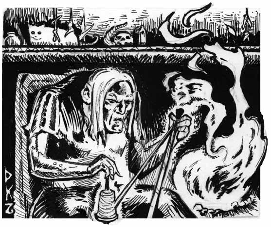 But first, Gallfred goes to meet the local witch Ymae the Mad Widow. Seems like there’s old witches everywhere and they’re generally related. He loves their poison and filth. And she makes him an indecent proposal – she’ll make an undead-catching net if he agrees to marry her! “Sure,” he says…