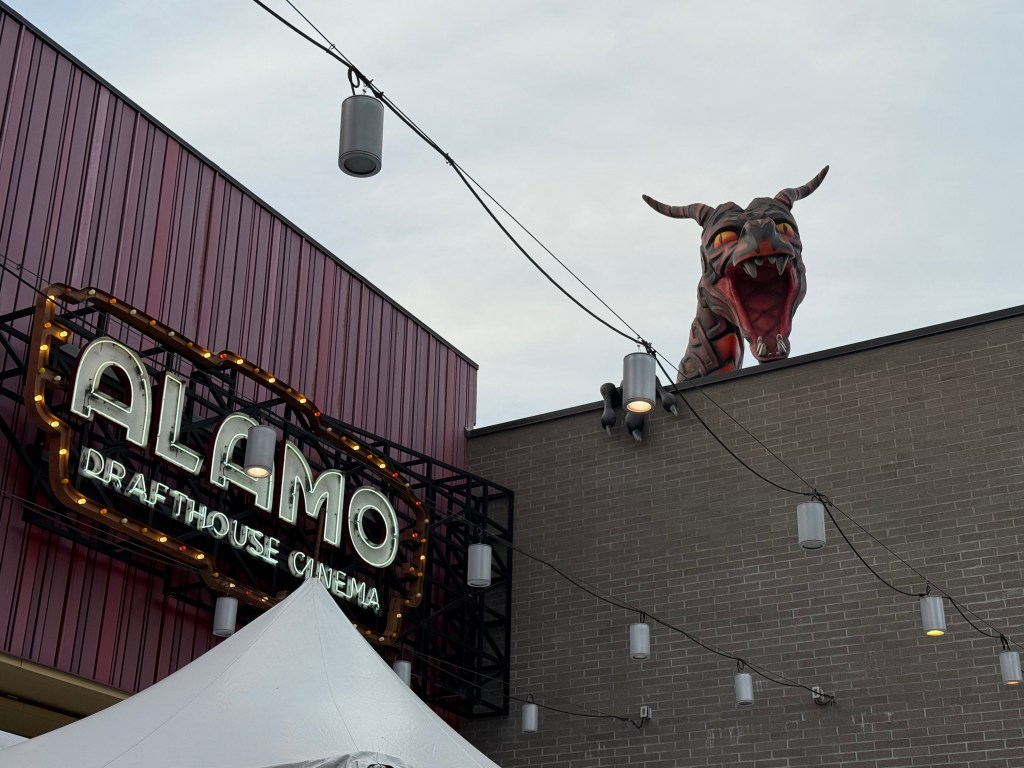 The first day is a partial one – an opening night party and big premiere on Thursday night. The Highball, the bar connected to the Alamo Drafthouse South Lamar that hosts the festival, was all Dungeons & Dragons decorated – they even had a dragon head set up atop the building outside like the Godzilla head in Shinjuku! Cosplayers in Renfaire garb filled the venue (advertising a “Hynafol” LARP event happening soon at a local Renfaire).