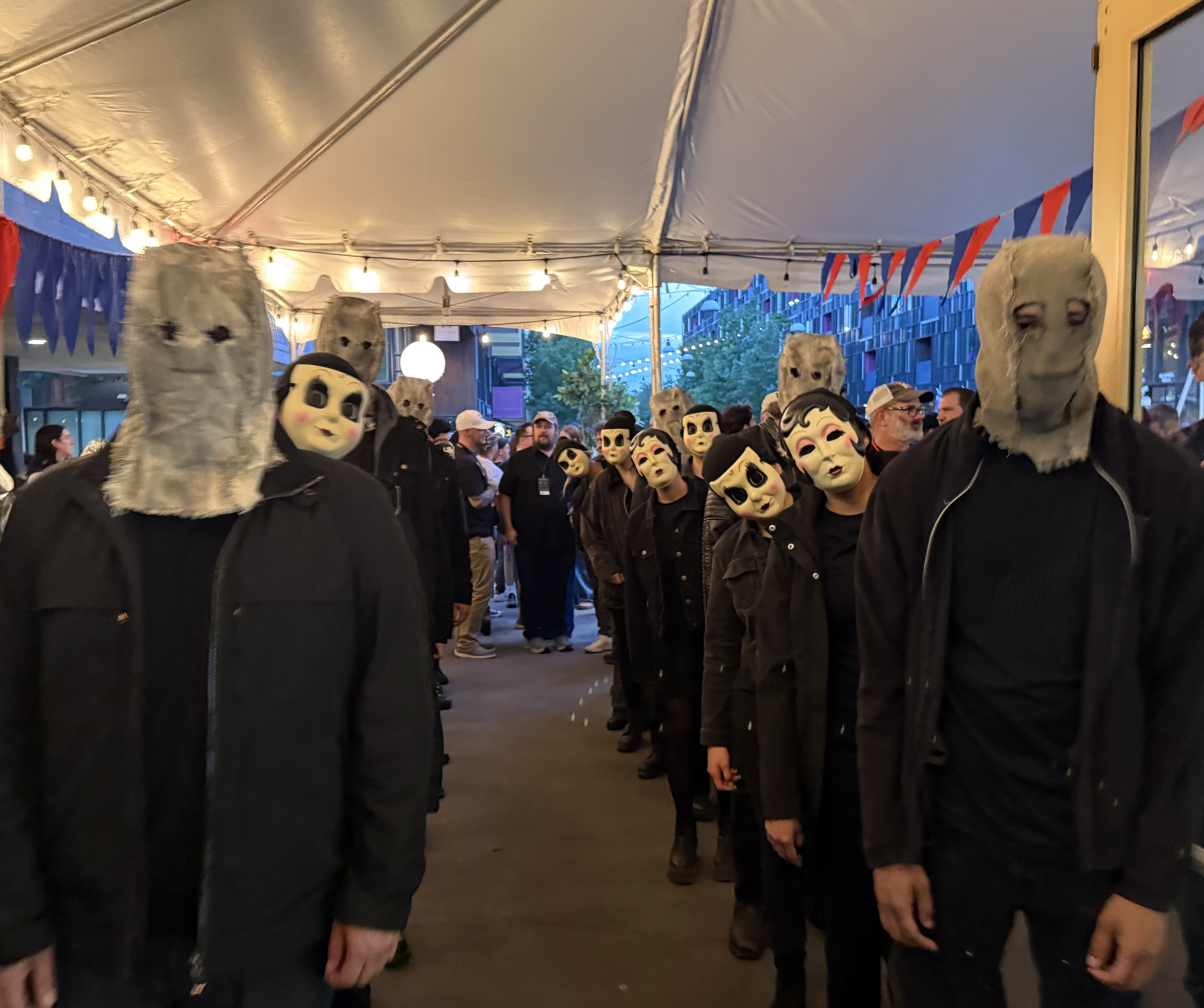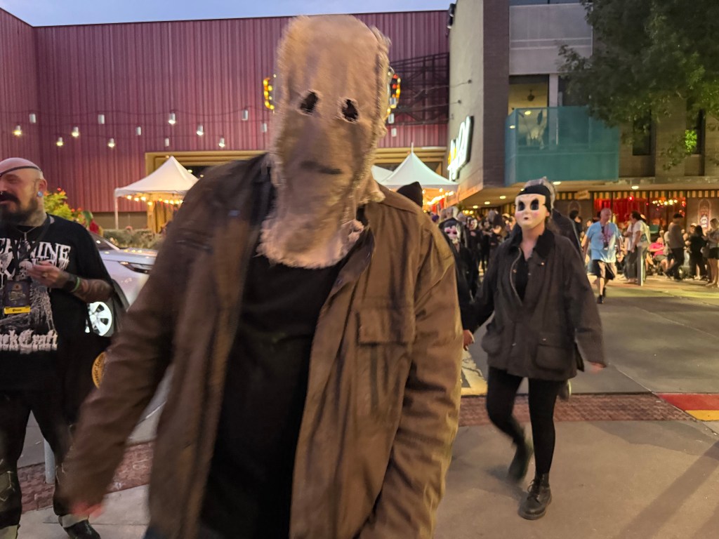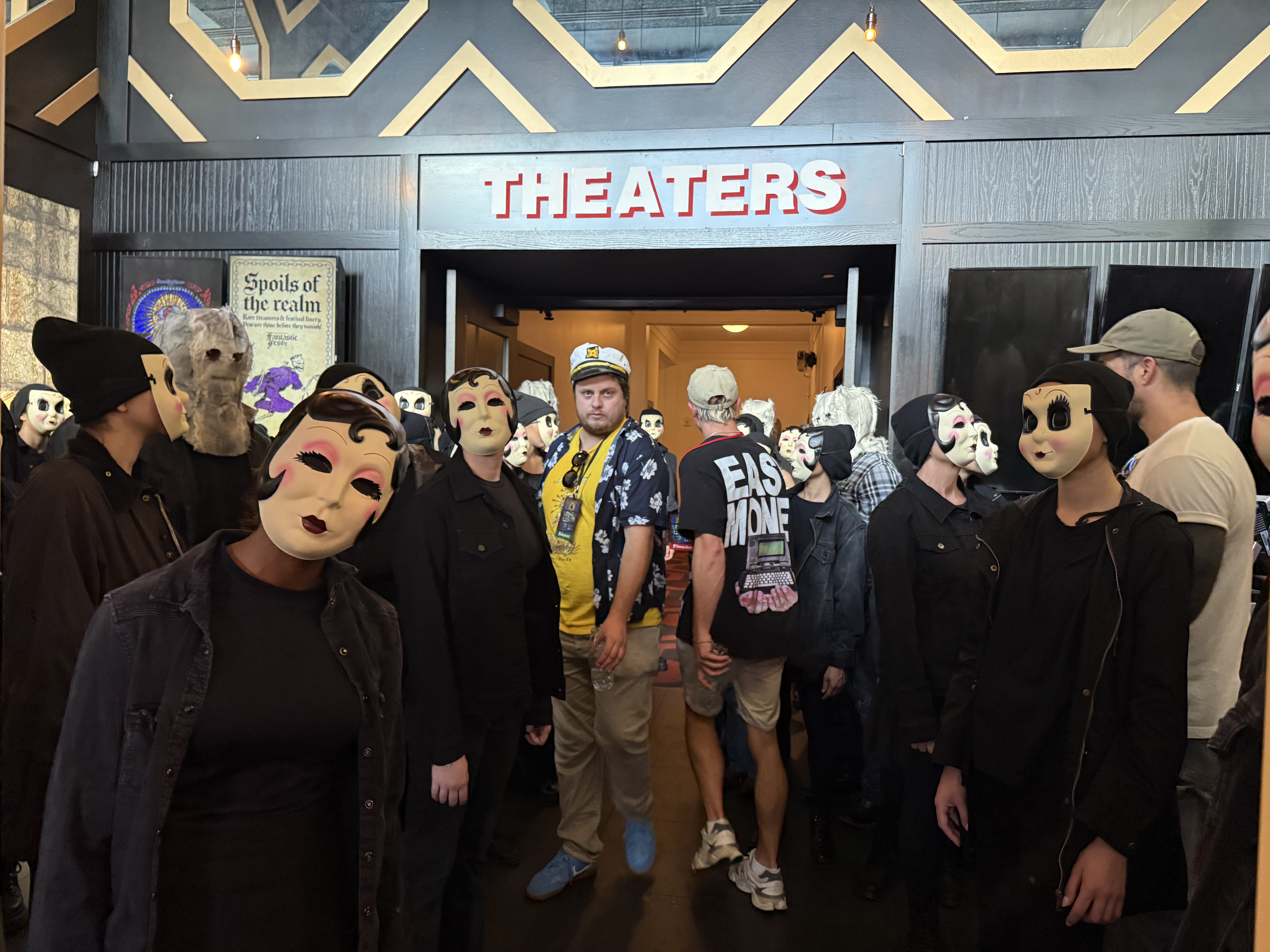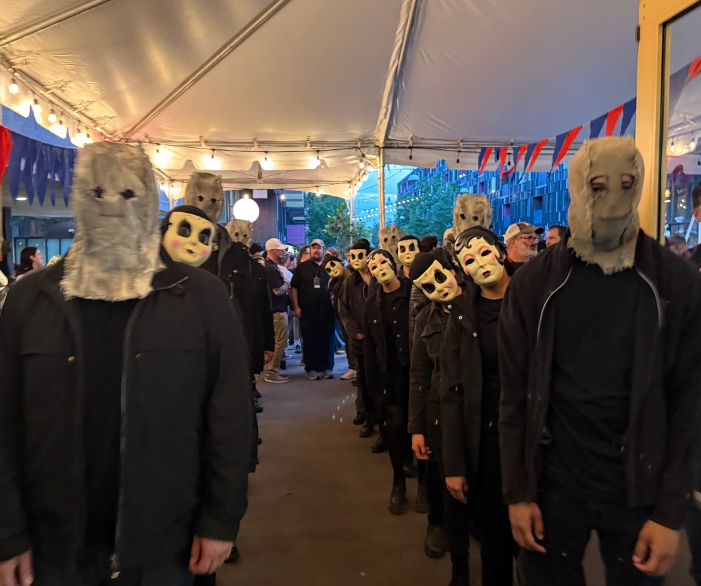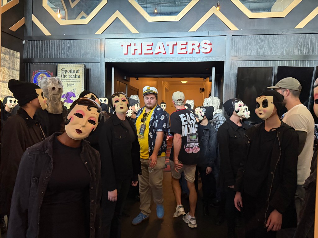 A mess of weirdos provided entertainment between films – a crowd of folks paid to dress up for, I think, “The Strangers – Chapter 2“(?)