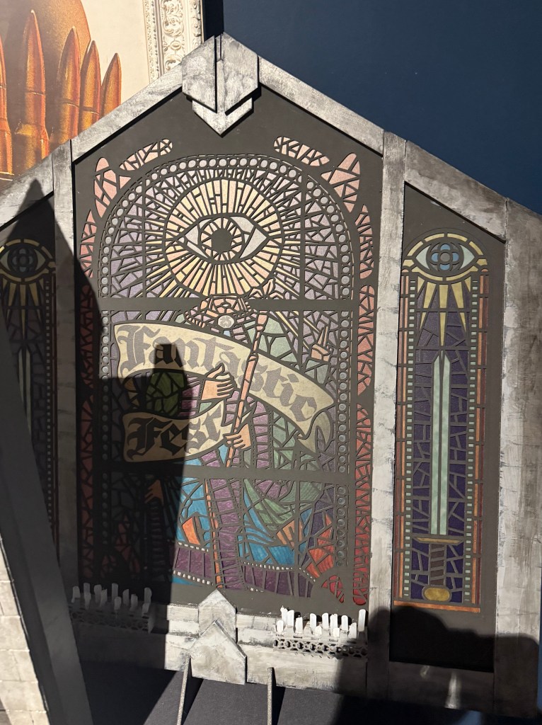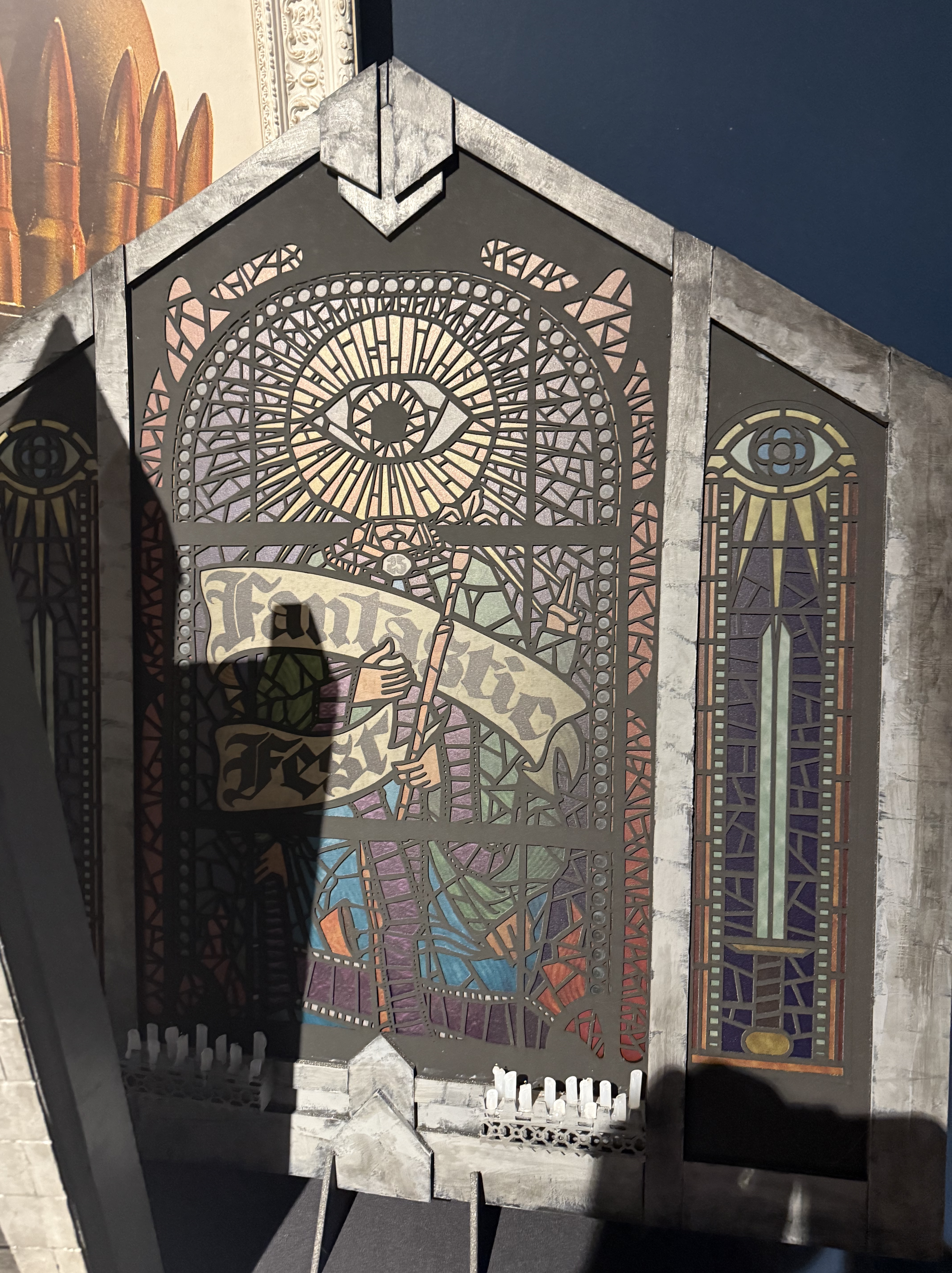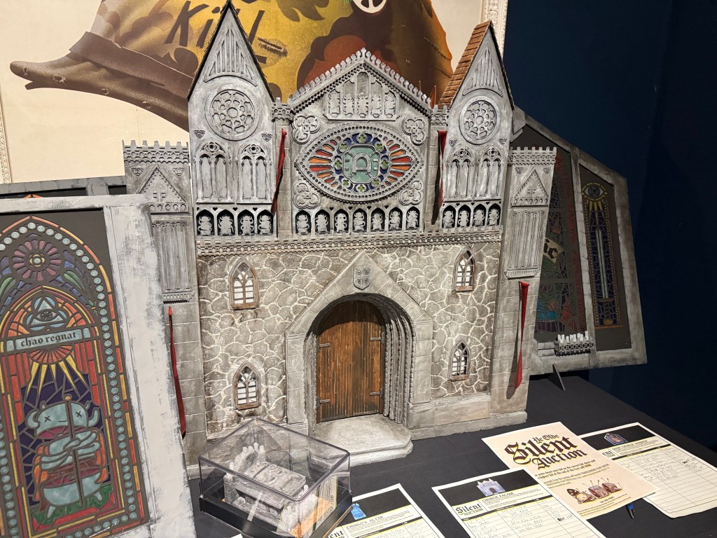 It’s a fine Saturday morning and the big weekend of the fest is here. They start a silent auction for parts of the diorama they used to film the “spooky church” trailer for the fest, which is cool – I’d love the big stained glass piece to put in my window but the bids immediately hit $500 and Lord only knows what they got to eventually.