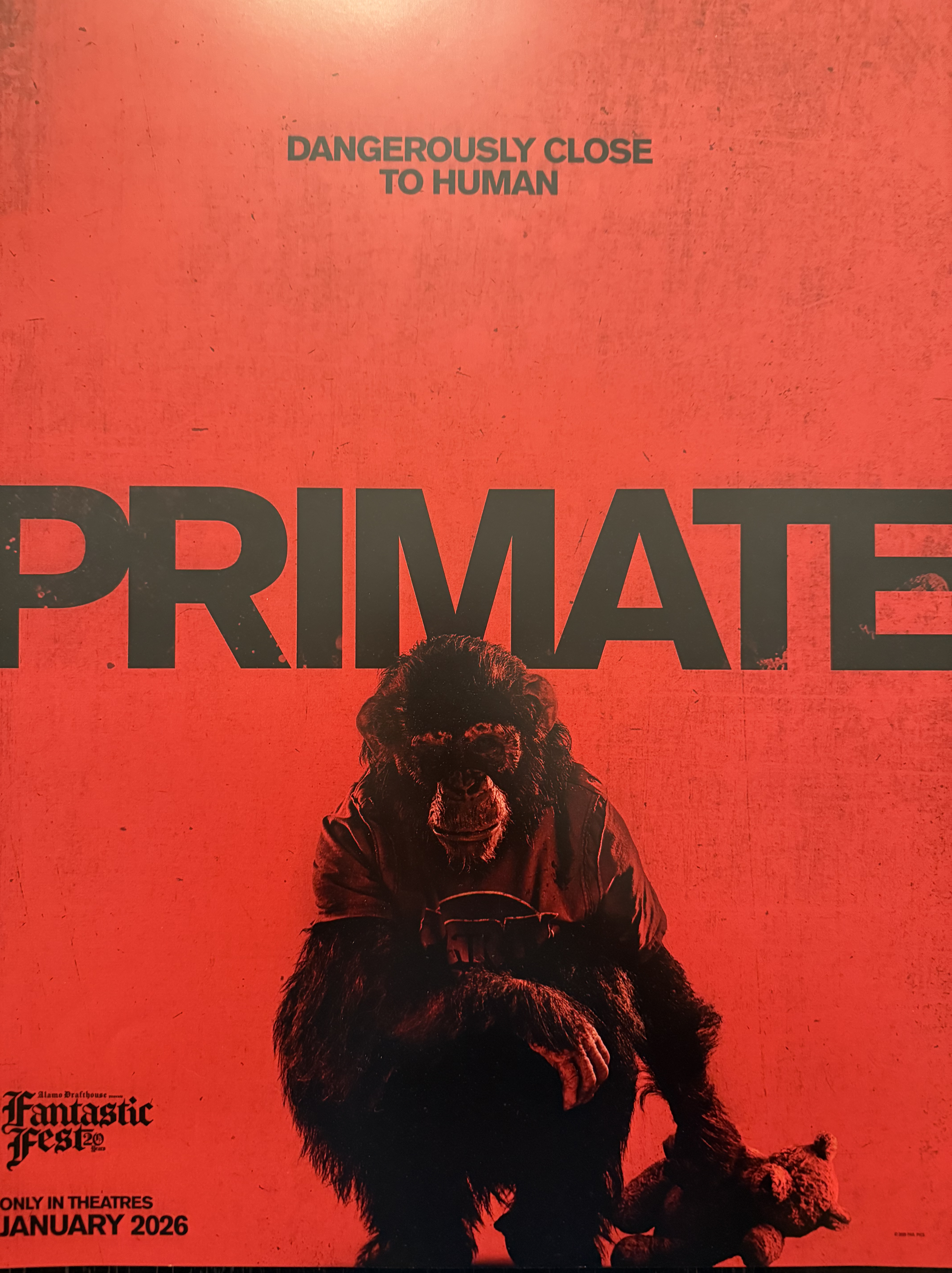 Then we had the big premiere of the first night, a movie called Primate, showing on most screens. There were a couple screens of something called Tree of Knowledge that also looked good, but I figured I’d start the fest off with the big crowdpleaser most folks were attending.