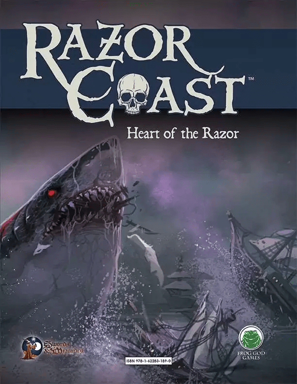 We start with related content, in this case from the Heart of the Razor adventure book: The Black Spot and Sinful Whispers, and then Deep Waters from the back of the Razor Coast book itself, by the legendary Frank Mentzer.